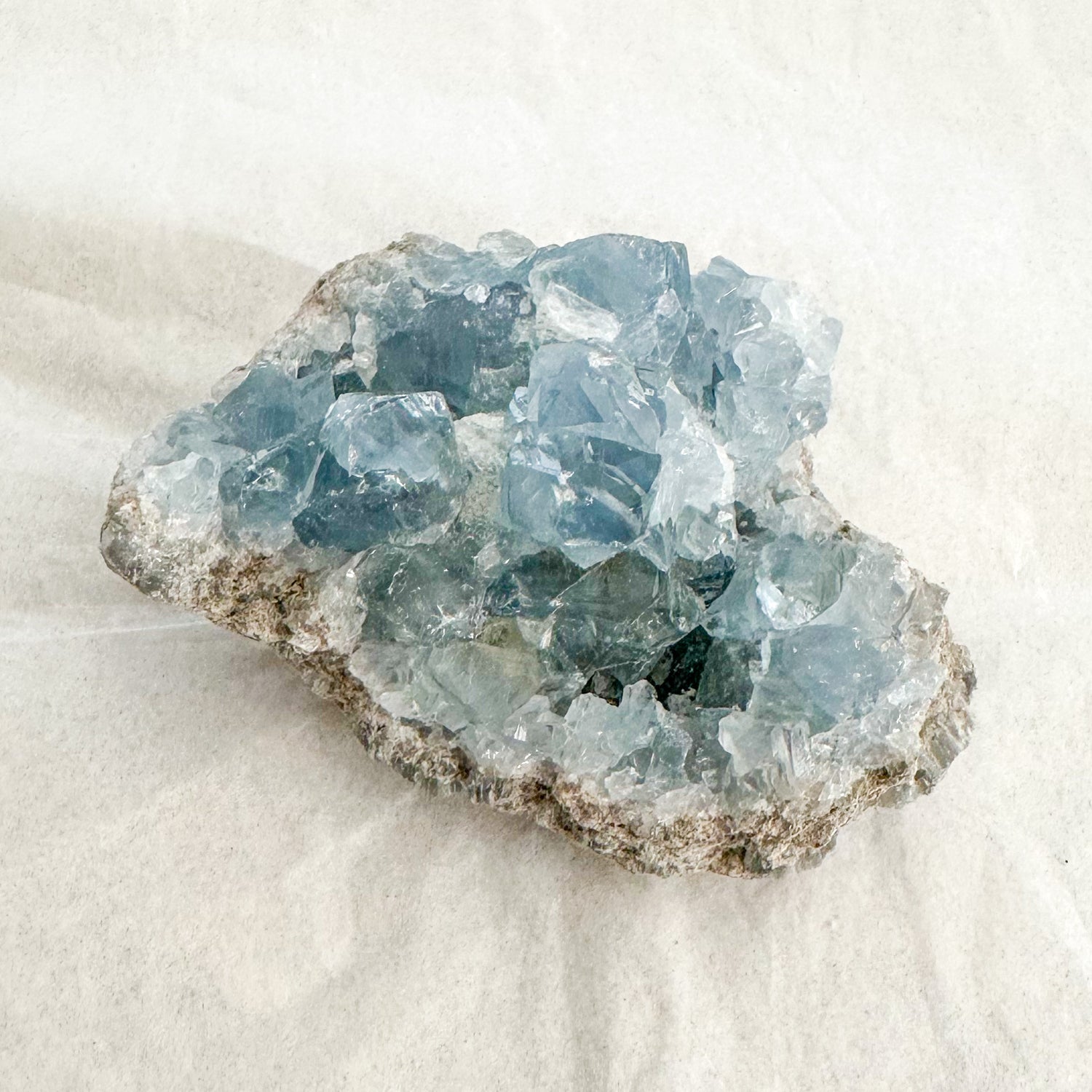 Besides its visual appeal, celestite is also valued for its metaphysical properties, believed to foster peace, tranquility, and a connection to higher realms.